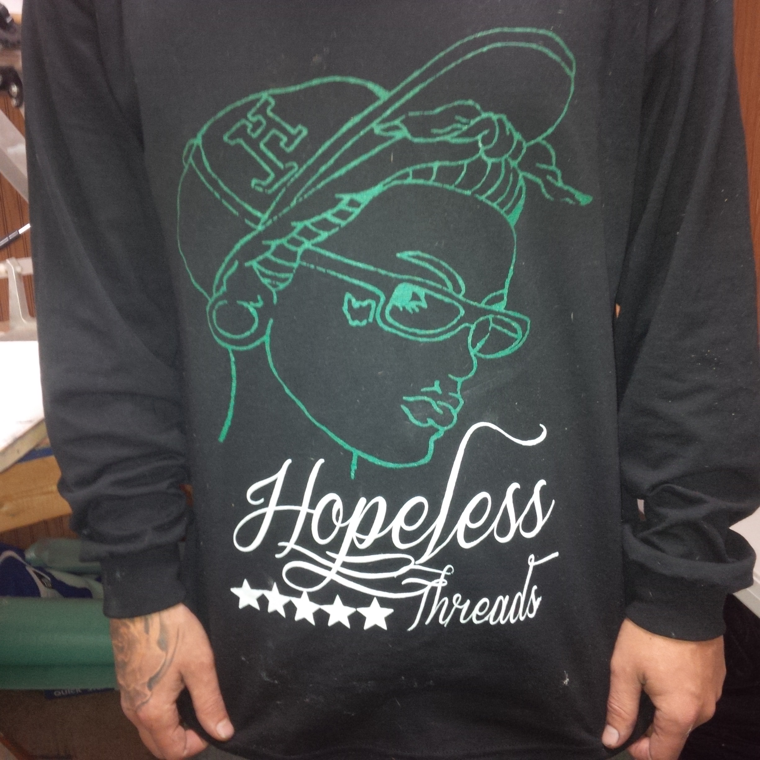 Long sleeve perfect for the cold weather! Limited quantity, Limited time! A clash between the popular 5-star design and one of Hopeless first designs, the tattood girl. Order fast before the rest are gone!